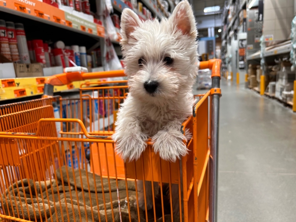 Hele před tím jsme měli také westičku a byla zlatá. Tahle je sice tvrdohlavá, ale pamlsky ji učí povelům atd. Po měsíci už toho umí hodně, ale je to náročné. Připadám si s tím opakováním stále dokola a někdy bez výsledku jako učitel na škole v Chánově.