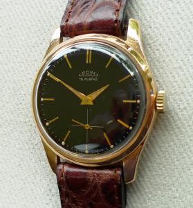 Přiznávám se.... Doufám, že to byly znalosti kombinované s jistotou . Sice to byla mazanina, ale tento velmi málo častý typ číselníku se zvláštními lumi ručkami se mimo chromovaných pouzder vyskytoval jen ve 14 karátovém zlatém pouzdru. Že to bylo 14k pouzdro se dá poznat podle atypického uchycení nožek k tělu pouzdra.... Jsou to jedny z nejkrásnějších 14k primek.... Jen pro pořádek přikládám mojí jen o trochu lepší fotku .