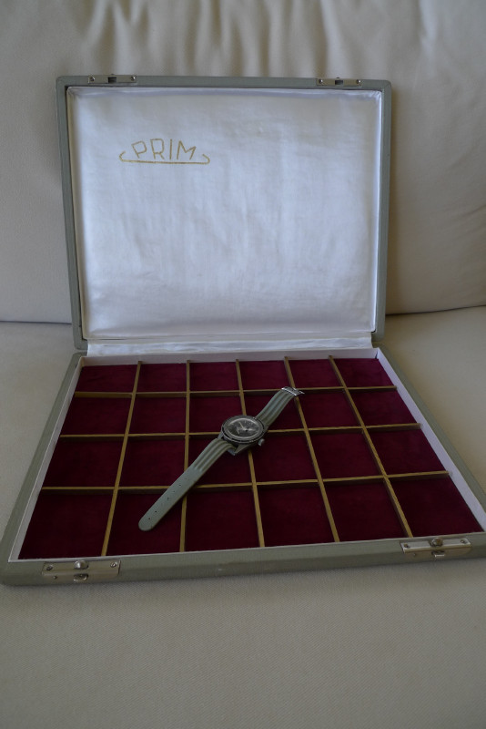 Krabice pro hromadné balení Orlíků to sice není, ale jedny starší Orlíky se v ní nyní nacházejí....Napovím, že jsou trochu starší než běžné ..... Jinak tato etue bylo podle dostupných informací používána pro prezentaci hodinek prim zástupci Eltonu na výstavách a prodejních prezentacích...