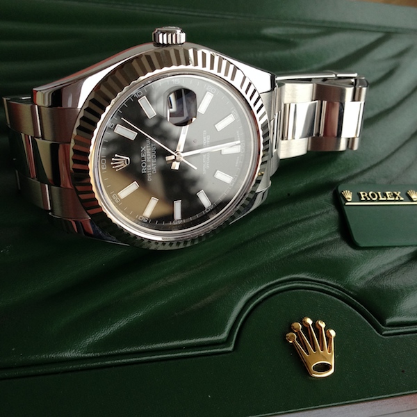 Ahoj všem tak konečně se můžu pochlubit mýma prvníma Rolexama v životě.Pro mě má rlx dva ikonický modely,Submariner a Datejust.Dneska to teda budou Datejusty:-)Celý to bylo neplánovaný, impulsivní,rychlý rozhodnutí,z kterýho jsem se pak chvíli klepal:-)Ráno jsem otevřel fórum,mrknu do prodeje a je to tam.Po pěti minutách píšu SZ.Za chvíli odpověď,sedám do auta a vyrážím z Krkonoš do Prahy.Večer v sedm sedím v obýváku s Rolexama na ruce:-) K samotným hodinkám-ideální velikost,krásný pouzdro,boží luneta,pohodlný,na světle venku hrajou krásně odleskama a měněj barvu....to jsou jedny z definitivních/pro mě/. Pár fotek telefonem...