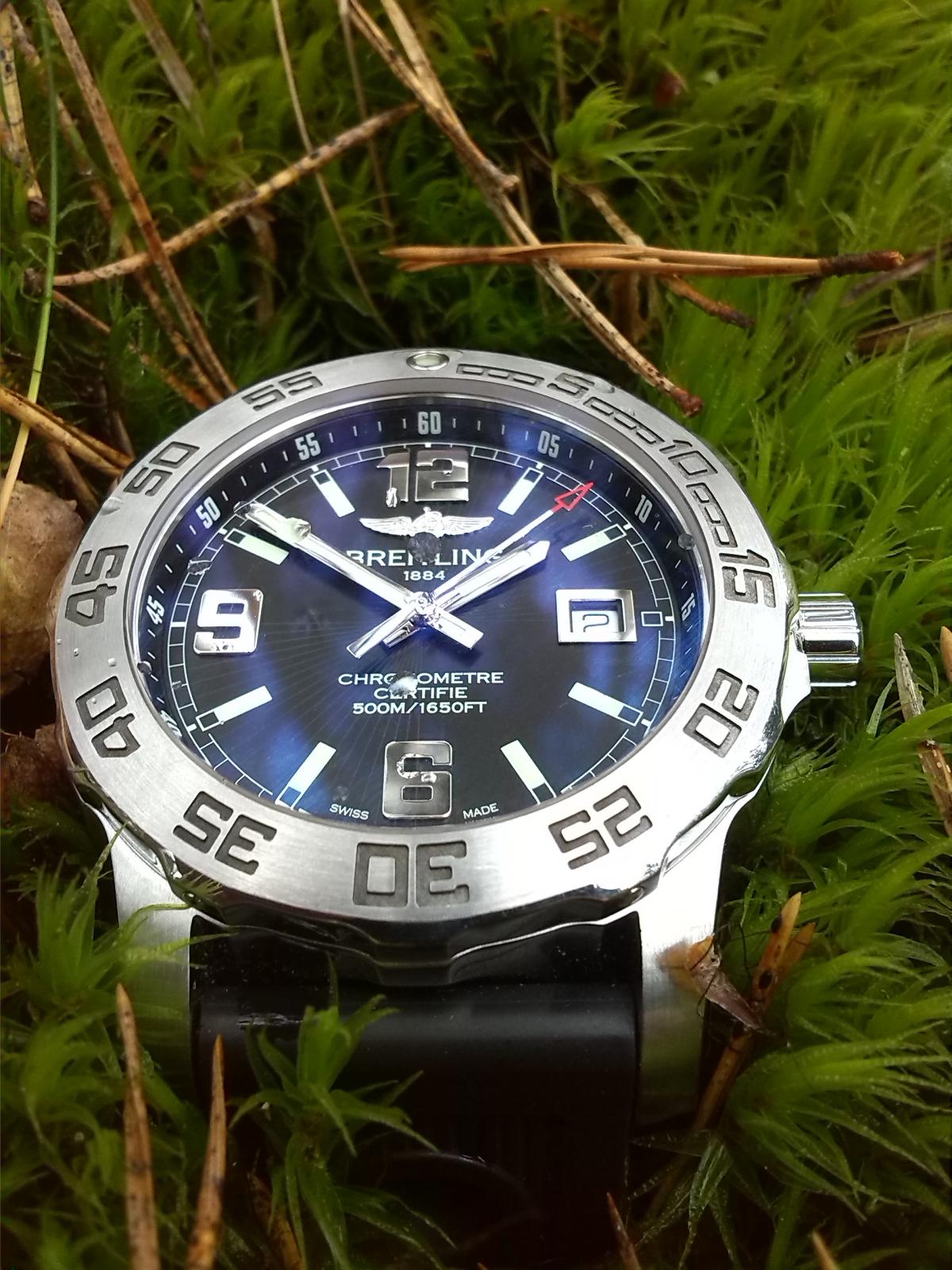 Abych se hned na začátek přiznal, nikdy jsem nebyl příznivcem této značky. Několik modelů jsem měl možnost dát na ruku, ale ta jiskra prostě nepřeskočila. Spíš jsem ujel na zn. Omega a poslední cca. 3 roky jsem vlastnil SMP. Začal jsem na modrých, starších bondovkách a pak přešel na novější, černou verzi. Po nějaké době jsem si řekl, že bych měl zkusit i něco jiného. Prodal jsem SMP a čekal, co mi brnkne do oka. Po jednom pivku :-) s jedním místním členem, který mi představil tento model jsem se zamiloval. Měl jsem v hlavě i nějaké TH, ale tyhle Colty mě prostě dostaly. Co k nim říci? O precizním zpracováním a úžasném AR se ani nemusím zmiňovat. Mám zápěstí 17,5 cm, ale velikost hodinek mě vůbec nevadí, ani při tomto "letním počasí" a nošení dlouhých rukávů (zimní bundy). Nastudoval jsem něco z historie zn. Breitling a jsem rád, že jsem vlastníkem značky s takovou historií.