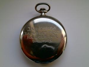 Moje dědictví po pradědovi. Radost snad kazí jenom fakt, že praděda byl velmi aktivní člen strany a národního výboru. Snad to není krvavý konfiskát. Průměr 49mm, očista v servisu, nové sklo a ručičky, které jsme jako děti ulomily. Jsou příjemné.