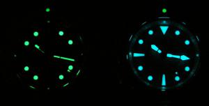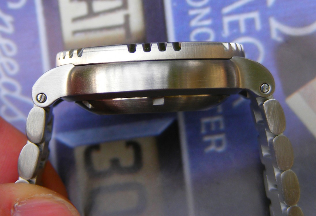 Vím, že tu vlákno na hodinky Deep Blue již existuje, ale na můj model hodinek tu ještě vlákno není a protože jsem nafotil poměrně dost fotek, rozhodl jsem se založit si vlákno vlastní. Doufám, že to nebude bráno jako dublování. Kdyby jo, tak si s tím módi jistě poradí. Protože jsem se už poněkolikáté poslal Monstra do světa, potřeboval jsem ke svým áčkovým Béčkám levnější potápky na takové to pracovní otloukání. Chtěl jsem Srpy nebo nějaké hodně jeté Suma, Samuraje nebo něco podobného. Jenže zrovna v prodejní sekci nebylo nic co by mě zaujalo. Tak jsem se ovlivněn zdejším podobným vláknem, podíval na poměrně známou americkou značku Deep Blue. Po prohlédnutí stránek distributora pro Polsko a ČR jsem zvolil a objednal typ DB Pro Sea Diver 1000 Black s černým dialem a oranžovou minutovou. Po určitém čase se mi ozval Marcin z AtomicTime, že asi bude s mým modelem trochu problém s dodáním a abych měl strpení. Mé strpení bylo u konce kupodivu až po měsíci, tak jsem následovně Marcina požádal o nějaké alternativní a hlavně rychlé řešení. Marcin mi okamžitě nabídl dost modelů které byly určeny k okamžitému odeslání. Moje volba padla ihned na DB Pro Sun Diver II 1000 Silver a ještě ten den (ve středu) je objednal. Druhý den jsem obdržel tracking number a v sobotu ráno je pošťák přivezl k nám domů. Teď již k samotným hodinkám. Pouzdro je vyrobeno z oceli 316L a je kartáčované, průměr 46 mm bez korunky, délka 52,5 mm. Tvar pouzdra je takový soudkovitý, pravděpodobně inspirovaný potápkami od Oris. Korunka na pozici tři je šroubovací a má několik poloh pro seřizování . Hodinky jsou opatřeny i heliovým ventilem, který na 99,9% nikdy nevyužiji. Vodotěsnost je udávána 1000m. Luneta má průměr 43 mm a je jednosměrně (jak jinak) otočná po 120 klicích. Otáčení jde poměrně lehce, což se mi zrovna jako výhoda nejeví, mám raději trochu tužší pohyb lunety. Luneta je taktéž kartáčovaná s černou vložkou s číslicemi na obvodu, skokově po desítkách. Mezi číslicemi jsou po obvodu lunety zářezy pro snadnější otáčení. Silné safírové sklíčko má vnitřní AR. Stříbrný ciferník, který mi připadá spíše jako takový perleťový je velmi přehledný. Indexy jsou velmi výrazné a opatřeny výtečnou luminiscencí. Na pozici 3 je datové okénko. Ocelový náramek je celkem solidní a poměrně masivní a jako ostatní ocelové části hodinek má kartáčovaný povrch. Spona je nejslabší článek hodinek. Je to trochu lepší plechovka. Na druhou stranu, co bych chtěl v této cenové relaci. V hodinkách pracuje kalibr Seiko NH 36, 24 kamenů, day/date, 40 hodin rezerva. Což není nic jiného než osvědčený Seiko 7S36 vylepšený o hacking a možnost manuálního nátahu. Překlápění data je u tohoto kalibru stejně dlouhá záležitost jako u již zmíněného 7S36. Přesnost byla zatím + 6 s za 24 hodin, což mi připadá skvělé. Věřím, že se strojek ještě usadí. Co napsat závěrem? Musím říct, že se mi hodinky líbí a to je to hlavní. Dobře sedí i na mé poměrně útlé ruce. Hodinky váží při plném tahu 220g, ale to mi vůbec nevadí, většinou jsem měl hodinky co jsou na ruce cítit. Myslím si, že jako konkurence díky lepšímu vybavení a kvalitnímu zpracování proti Monstrům a dalším podobným modelům určitě obstojí. Abych řekl pravdu, hodinky s tak kvalitním zpracováním, vysokou vodotěsností, safírem s vnitřním AR, skvělou luminiscencí, heliovým ventilem, slušným kalibrem s hackingem a manuálním nátahem a bonusem v podobě originálního cestovního pouzdra za cenu Kč 6500,- včetně dopravy, jsem ještě neviděl. I za cenu, že i když jsou USA brand, tak první člověk který se jich dotkl a neměl přitom šikmé oči, jsem byl asi já. Nakonec několik srovnávacích fotek s brandem více jak 10x dražším. Omlouvám se za fotky, jsem fotografický analfabet, který umí fotit pouze kompaktem a v automatickém módu. Pouze jsem použil makro a fotky zmenšil ve fotoshopu.