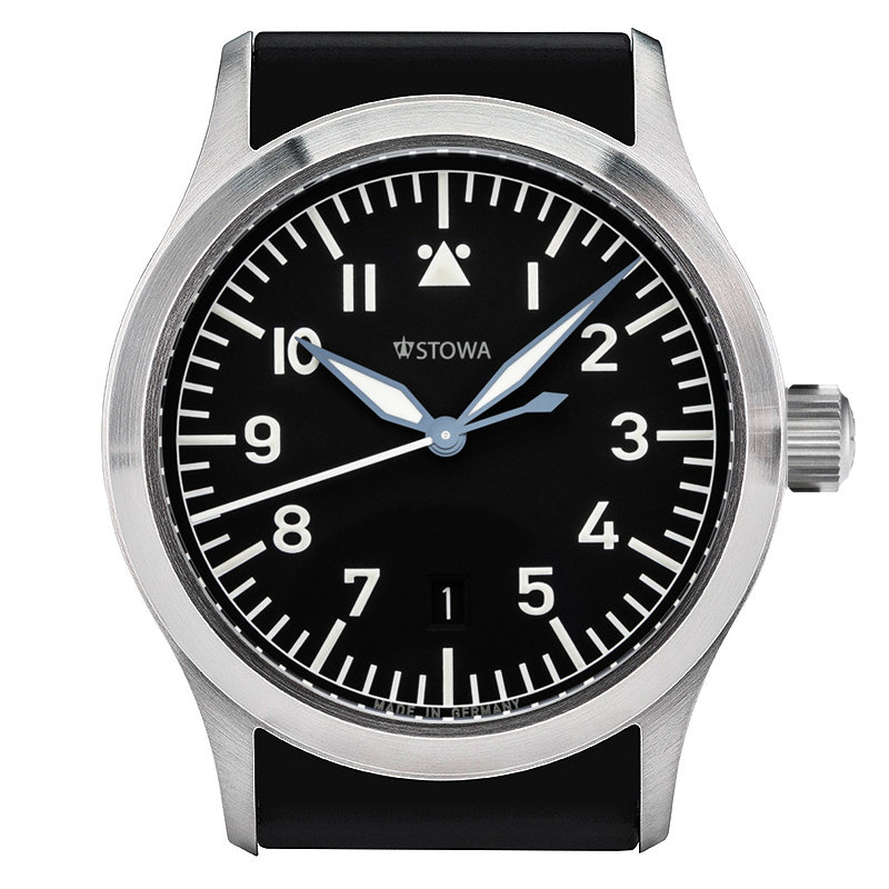 Novinka od Stowy, 43mm Fliegry: The 43 mm case and the extra thick sapphire glasses allow a 200 m water resistance and a higher shock resistance (following the successful design of the STOWA Testaf TO1). The luminous intensity of the hands and the dial are as with all STOWA watches extremely strong. We offer the watch in all dial versions: - Flieger with logo (with or without date)- Flieger without logo (with or without date)- Flieger with the Baumuster B dial Diameter: 43 mmHeight: 12,3mmStrap width: 24/20 mmLug-to-lug: 51 mmWaterproof: up to 20 ATMWeight: about 115 grams with rubber strapCaliber: ETA 2824-2 TOP version viac info:https://www.stowa.de/lshop,showrub,143681097523679,en,1436812458-29309,flieger,,,,.htm?utm_source=CleverReach&utm_medium=email&utm_campaign=Flieger+Klassik+Sport&utm_content=Mailing_9140690