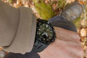 Můj tisící příspěvek byl o nových solarech z Japonska, můj dvoutísící příspěvek bude o nových solarech z Japonska Jak jsem psal už kdysi, bezúdržbové quartzy mě navzdory veškerému respektu k mechanice stále silně oslovují, a jednomu takovému oslovení jsem minulý týden opět podlehl. Titanové solární Seiko divery z příspěvku o tisícovku dřív jsem po relativně krátké době pustil dál (a jsem rád, že novému majiteli stále dělají radost), mně z různých malicherných důvodů nakonec nesedly, i když mi prý slušely... Z těchhle nových ProTreků mám od začátku dost jiný pocit a mé nadšení s dobou spíše roste, takže uvidíme, kam až to dospěje. Opět přeskočím informace, které se dají najít v prvních třech výsledných odkazech na Googlu, a uvedu pár svých vlastních počátečních postřehů. Hodinky navzdory své velikosti mi na ruce nepřipadají až tak strašně velké, mně osobně vyhovuje jejich trochu "hladší" a střídmější design ve srovnání s Géčky, na první dojem (koukám přece na plasťáky, že) jsou i poměrně těžké a působí takovým seriózním, solidním dojmem (třeba opět ve srování s Géčky, když už jsem s nimi začal) - za což z velké míry může zeleně anodizované hliníkové pouzdro schované z větší části pod zmíněným plastem. Celonerezové potápky to ale samozřejmě nejsou, což je koneckonců pro lidi mé konstituce fajn, nehrozí tolik skolióza. Řemen je vyztužen uhlíkovými vlákny a kromě toho, že má být oproti klasickému resin bandu pevnější (nezkoušel jsem), je výrazně měkčí, ohebnější a příjemnější na ruce - tohle je opravdu poznat hned při prvním nasazení, zvlášť pokud máte možnost bezprostředního srovnání s resin bandem na PRW-3000. Na ručičkách mě bere dokonale přesný pohyb - vteřinovka jde přesně na indexy, komplet na všech 60, a kdyby se snad náhodou někdy mezi nimi ztratila, hodinky se umí znovu zkalibrovat Minutovka se hýbe o adekvátní úhel po 10 vteřinách a pro mě je to stejně (kacířsky si troufnu říct, že snad i trochu více) uhrančivé jako 3Hz nebo 4Hz pohyb mechaniky - nemůžu si pomoct, jsem prostě takovej. Digitální display při zobrazení času se sekundami jde přesně v synchru s ručičkami, prostě dokonalá přesnost. Konce ručiček a indexy luminují, na Seiko potápky se sice nechytají, ale i tak jsou k ránu před rozbřeskem bez problému čitelné. Když tak se dá použít LED podsvětlení, kteréžto není rovnoměrné, ale pustí prostě světlo na digi display a cifr z diodky na šestce. Není ani nijak silné, takže je otázkou, jestli to kritizovat nebo být rád, že nepřijdu na další půlhodinu o noční vidění Smart select korunka - nebylo potřeba číst návod, je to intuitivní, dělá se s ní dobře, proti klasickému tlačítku nepřináší o nic lepší, jednodušší ani rychlejší ovládání, ale není to ani o nic horší - je to prostě trochu jiné, příjemně osvěžující a cool. Hodinky jsem (kromě odečtu času) začal používat jako budík, minutku na vaření, stopky na běh, teploměr a pro hrubý odhad vývoje počasí i jako tlakoměr, takže jsme spolu tak nějak víc, než jsem původně čekal. Určitě to časem povolí, ale momentálně jsem jejich praktičností a moderním cool designem a "chováním" (při manipulaci s korunkou ručičky za lehkého vrčení moc pěkně běhají po cifru) poměrně silně unešen. Takže pro začátek nahodím pár fotek a budu doufat, že tohle vlákno budu moct časem doplňovat dalšími a lepšími.