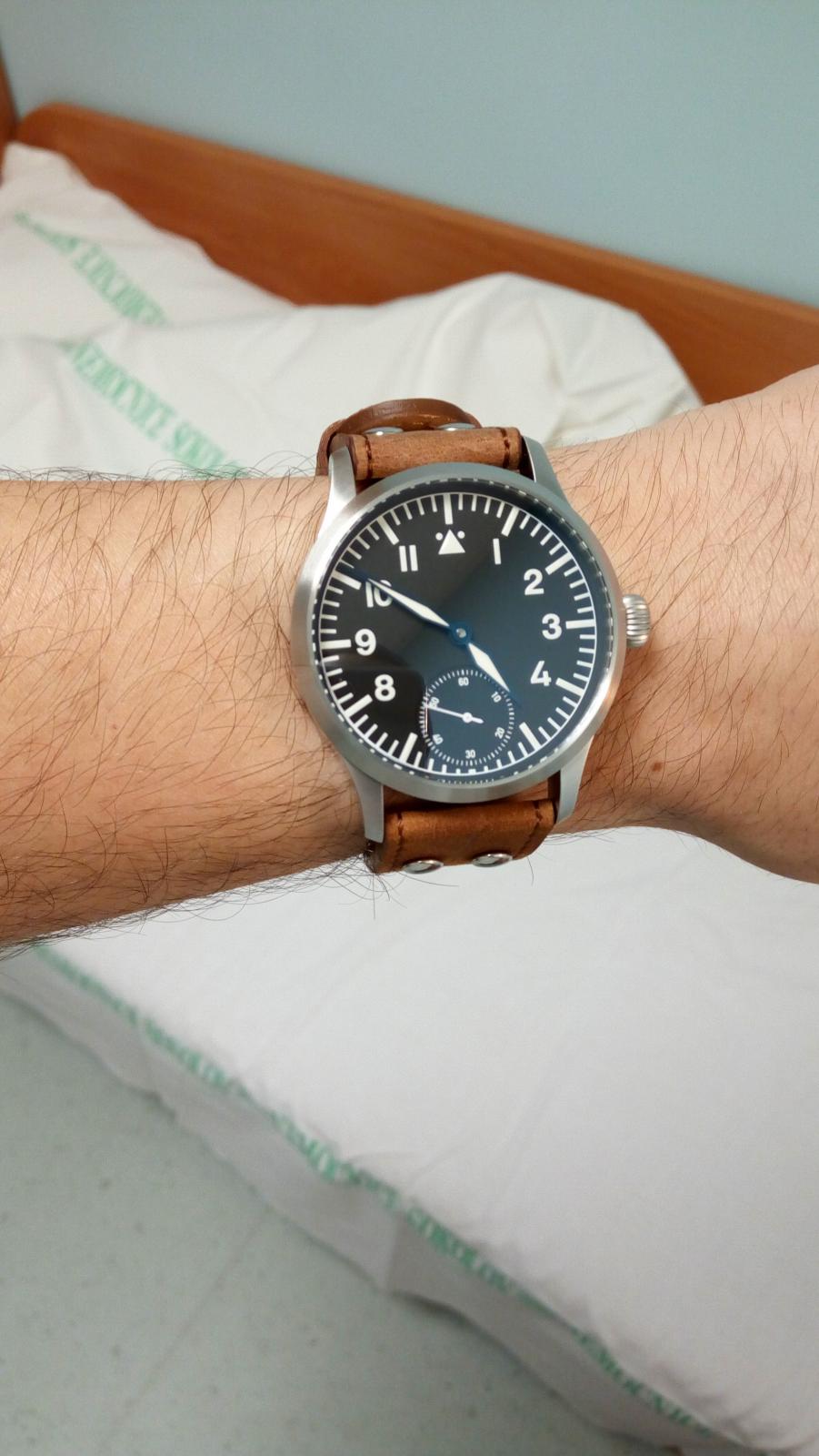 Zdravím vospolok, Ešte na jeseň minulého roku som začal obzerať pilotky, čítal som si články a recenzie. A tak nejak som prudko zatúžil jedny Fliegere vlastniť, a no, Vianoce sa blížili tak som mal aj celkom slušnú výhovorku... Potichu a postupne som začal zbierať chechtáky a tak nejak čakal, samozrejme Wempe alevo IWC by bola brutka a vlhký sen by boli A. Lange Sohne keby sa podarilo, ale rozpočet ma tlačil viac smerom k Stowa alebo Laco (nevadí, všetky majú historickú hodnotu tým, že patria medzi origo dodávateľov letectvu za 2sv. vojny). Jeden pekný večer som sa vďaka tomuto skvelému fóru dozvedel o tom, že Stowa má zľavu na kusy, ktoré vystavovali na MunichTime 2016 (do Viedne sa im nechcelo....Jorg jeden). Letel som na ich stránku a ešte o polnoci bojoval s internet banking-om aby som si poistil, že mi nikto moje B-Uhr nevyfúkne . Platba prešla a nastalo dlhé čakanie na FedEx (mrchy nevozia na západ od Prahy... to som zistil, ale až neskor). Balík mi mal doraziť 12.12.2016, ako som prišiel z práce som do večera 18:00 čakal ako truľo pred barákom multifunkčného domu a žral kebab a vyzeral prekliaty FedEx. No nikde nič. Zklamaný a naštvaný som zaliezol do bytu a doháňal deficit aspoň fotkami na nete. Druhý deň ráno som ešte z práce volal na hotline, a týpek mi hovorí, že oni tam nevozia, že to predali GLSku....... že fasa. Naštastie krátko na to mi prišla sms, že mi to v ten deň doručia, museli do nemocnice, bo ako inak som musel mať v ten deň službu. Okolo obeda som prebral balík a teším sa z nich do dnes a ešte dlho budem. Pár techno-info model Stowa Flieger no logo no date 6498 Kleine Sekunde Priemer 41mm, výška 12mm, lug to lug 50,20mm 5ATM vodonestesnosť Krásne zdobený poctivý manual wind Unitas 6498-1 Táto smršť mobiloviek je taký malý unboxing, snáď aspoň trochu potešia oko tunajšieho kritického publika