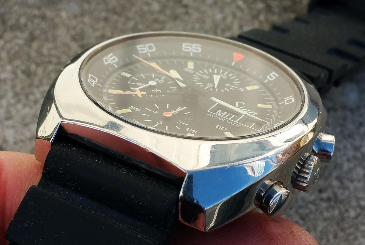 Pořídil jsem další vesmírné hodinky, tentokráte model Sinn 140/42 osazený legendárním strojkem Lemania 5100. Tento model, jen v černém PVD provedení, byl v roce 1985 v první vesmírné misi Německa v projektu Spacelab D1 konkrétně STS-61A https://www.nasa.gov/mission_pages/shuttle/shuttlemissions/archives/sts-61A.html Tyhle hodinky se mi vždy líbily, ale jejich ceny jsou poměrně vysoké a já chtěl staré, nejlépe z počátků výroby tohoto modelu /což úplně nevyšlo/. Poštěstilo se minulý týden na Aukru a já mám další kousek do sbírky. Hodinkám chybí korunka otáčení vnitřní lunety, ale to nebude problém. Strojek šlape pěkně, stopky nulují bez problémů. Korunka je šroubovací. Ručky mají nádhernou patinu a jediné co je jinak, je zvýrazněná pozice na 12h, ale s tím se asi smířím. Datace bude trochu oříšek, obrátím se na Sinn, jestli to zvládnou podle seriového čísla, ale vypadá to na rok cca +- 1994 , podle ražby v dýnku. Také tomu nasvědčuje šedá semišová krabička s nápisem Sinn Chronographen. Vždy jsem si nevím proč myslel, že tyhle hodinky se dělaly v pískovaném povrchu, ale omyl. Ten se dával na nověší modely. Na povrchu jsem nenašel žádné známky pískování a žádné známky strojního leštění, takže ten lesk vznikl dlouhým nošením. Fotky tomu dost ubírají, naživo jsou hrany výraznější. Našel jsem pár fotek původních hodinek podobného seriového čísla a ten povrch byl takový matný, možná bych řekl nelesklý. Jsem rozhodnutý nechat hodinky tak jak jsou. Safír je v pohodě a pár škrábanečků mu jde vzhledem k věku odpustit. Pokud by někdo narazil na nějaké informace k dataci tohoto modelu, velmi je uvítám.