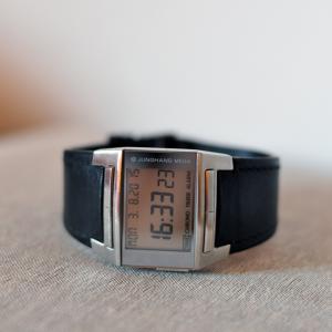Mám tady další kousek, kterému jsem neodolal. Už jsem měl titanovou verzi na tahu na ruce a tehdy mi moc nevoněly, ale tak nějak se člověk dostane do fáze, že se na ně dívá v PC tak dlouho až je pomaličku začne chtít. Takže je mám. A tak jako vždy z nového kousku jsem nadšený. Jak dlouho to vydrží uvidíme, ale tyto mají náběh stát se mými definitivními digitálkami. Ono to totiž v podstatě nic jiného není. Jedná se o model Junghans Mega 1000 26/4802. Když zadám tento ref do gůůglu, tak skoro nic nevyběhne. Nějaké starší aukce, ale nic konkrétního, takže vycházím z podobných verzí a v podstatě se jedná o standardní model Junghansu, který už se nevyrábí a nahradil ho jiný, ještě trochu avantgardnější model, který už se hodně blíží módním značkám. Tento, dá se říct ještě pořád nevypadá jako Hugo Boss. Krásně se v nich všechno leskne a odráží, nebrání to ale naprosto úžasnému pohledu na vždy aktuální a přesný čas. Historii bohužel nevím, hodinky přišly sice v kompletním balení s krabičkou a zárukou, ta však není vyplněna a podle refu nic nedohledám. Specifikace: Jedná se o verzi s pozitivním displejem Model: 26/4802 Pohon: Quartz Sklo: Safír WR: 5bar Funkce: rádiem řízené po celém světě s automatickou kontrolou, odpočet, stopky, budík, druhá časová zóna Rozměry: 38x37x10 Materiál řemínku: kůže ( no je tovlastně guma potažená kůži a po pravdě řečeno se jedná o nejslabší část hodinek, je tuhý jak veka a nejspíš ho řeka splaví a nahradí ho buď origo kovový tah nebo origo guma, která je údajně krásně měkká a ohebná) Co k nim říci více, pár lidí na foru je nejspíš vlastní a co jsem se dočetl jsou s nimi všichni spokojení. Uvidíme. Zatím se mi líbí.
