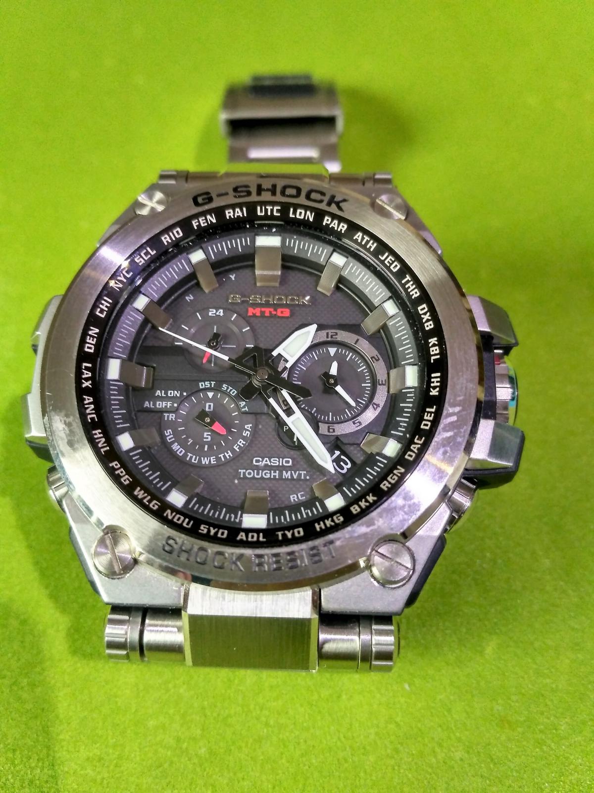 Nedávno jsem tu hledal rady na univerzální hodinky, nakonec mi doma přistály Casio MTG, tak (nejen) o nich zkusím něco napsat. Doufám, že to nebude moc dlouhé a aspoň někdo si to přečte, je to moje prvotina, tak prosím o shovívavost O tom, zda vůbec existují univerzální hodinky je tu diskuzí dost. Pro mě znamená univerzální to, že je sundám z ruky v podstatě jen, když jdu spát. Mám několik prací ? od záchranařiny, přes obchod až k manuální práci (příležitostně ). K tomu koníčky jako různé vodní kratochvíle, střelba, motorka, koloběžka se psem, atd? Čili ideální hodinky by měly být odolné, koukatelné k ?civilnímu? oblečení, akceptovatelné párkrát do roka k obleku a měly by se mi líbit. Vzhledem k minimální náročnosti na údržbu rádiem řízené a solárně napájené. Pohled zpátky Trochu odbočím ? mám rád všelijaké technické a mechanické věci, jsem nadšený z toho, jak vše funguje. Ať už to jsou stará auta nebo nové high-end fíčury. Vždycky mě fascinovaly mechanické hodinky, když jsem si jako dítě vyplakal doma Prim Sport, koukal jsem na ně několik dní téměř v kuse a ve škole jsem při plavání sklízel obdivné pohledy, že lezu do vody s hodinkama Když jsem ovšem později objevil, že existují i jiné značky a objevil v letáku Casio AW-22, byl jsem tak fascinovaný kombinací ručiček a displejů, že brigáda stíhala brigádu, až jsem si je s velkou slávou koupil. Koukat na to, jak ručičky každých 20 vteřin poskočí mě bavilo ještě déle, než počáteční čučení na předchozí Sportky J Zažily toho se mnou opravdu hodně, mám je dodnes a i když je na nich hodně vidět, že neměly na růžích ustláno, stále jsou plně funkční. Obrázek ilustrační: Poté přišlo poměrně krátké období různých ?designovek?, fake slavných značek, ale většinou moc dlouho nepřežily a na ruku šly zpátky staré Casia. Když jsem začal koukat, co místo nich, vyjelo Casio s G-Shock, které už nevypadaly jako obrněný plast, ale tou dobou stály na mě docela dost. Nicméně pomohl internet a nedbaje rad jak ?pošlu někam peníze a už je neuvidím? jsem objednal přes eBay Casio G-Shock GW2000BD. Opravdu přišly, byly za poloviční cenu než tehdy tady v Čechách a já byl nadšený. Kovové, rádiem řízené, solárně napájené a velmi odolné. Tehdejší reklama, že vydrží přetížení 5G a jsou testovány při Redbull Air Race asi nelhala ? postupně jsem si odvykl před jakoukoli aktivitou přemýšlet nad tím, že mám na ruce hodinky. Takže několikrát si daly mráz pod -20 a lyže, činnosti jako sekání dřeva, párkrát saunu, atd? Jediná údržba spočívala v tom cca jednou ročně seřídit ručičky na ?nulu?. Že jsou používané se projevilo drobným ?oleštěním? černého povrchu na pár místech, nejvíce na tahu z vnitřní strany. Třeba sklíčko, zřejmě díky tomu, jak je utopené, je stále netknuté. Měly jedinou nevýhodu ? opravdu nevypadaly úplně civilně a reprezentativně už vůbec ne. Přikoupil jsem k nim tehdejší novinku ? chytré hodinky LG Watch R. Ciferníky dle nálady a příležitosti, notifikace na hodinkách jsou velmi návykové Nicméně denní nabíjení, po předchozím rozmazlení bezúdržbovými Casii, mi po čase začalo lézt na nervy. Bral jsem si je tedy jen, když to bylo nutné a jinak opět putovaly na ruku Casia. Překvapivě mi u LG Watch R vadila nízká váha, najednou jsem si skoro nebyl jistý, jestli hodinky mám nebo ne. MTG Začal jsem hledat něco opravdu univerzálního, narazil jsem na Casio MTG a hned se zamiloval Mezi dalšími tipy tady na fóru se objevily i Seika, která nakonec vyřadila absence safírového sklíčka, Citizeny se mi nějak přestaly líbit a už to vypadalo na MTG-S1000D, když jsem se proklikal až k podobným MTG-G1000D. Rozdíl je v designu a ?G? mají i GPS, což se mi líbilo jako další technická fíčura Cena v ČR je o 15 tis. více než u řady S, nicméně trochu jsem projel zdejší fórum, následně internet a rázem jsem zjistil, že bych mohl mít řadu G za cenu, která je téměř shodná s řadou S v ČR. Následovaly hodiny u internetu, obrázky, technické parametry, to tu asi každý zná. Nakonec jsem vyrazil si oboje vyzkoušet. Designově měly každé něco do sebe, nicméně verze s GPS je cca o 1,5 mm vyšší. Normálně bych si toho asi nevšiml, ale na ruce to byl přesně ten rozdíl, kdy mi jedny sedly jak p?l na hrnec a ty vyšší byly prostě pocitově ?divné?. Zkrátím to, malá dohoda o ceně u obchodníka, kdy cena byla sice o trochu vyšší, než bych je dostal ze zahraničí, ale zase mám pětiletou záruku v ČR a už jsem si je vezl domů. Rozbalujeme Hodinky jsou dodávány v elegantní černé krabičce, ve které je menší krabička se ?zaklapávacím? víčkem. Jsou připnuté na černém koženkovém polštářku a zasazeny ve výřezu v černém molitanu. Po straně je ještě malá krabička s návodem, garanční kartou a dalším ?balastem?. Součástí je ještě klasická kartonová krabice, zřejmě myšlená jako transportní, na kterou jen stačí napsat adresu a celé to poslat. Po zabalení to působí dojmem, že si na balíček můžete stoupnout nebo ho shodit ze schodů. Nebál bych se takto zabalit i o dost křehčí hodinky První dojem Po vybalení, když vezmete hodinky do ruky, si řeknete ?ty jsou těžké?. Opravdu jsou, váha téměř 190 g znamená, že do kategorie lehkých je prostě nezařadí nikdo. Než nad tím začnete hloubat, zaujme špičkové zpracování a váha je zapomenuta. Častá kritika je, že ?za ty peníze ani nejsou celé kovové?. Část pouzdra je z něčeho, čemu někdo říká pohrdavě plast. Ve skutečnosti je to jakási pryskyřice, přirovnal bych to k materiálu, ze kterého je vyrobený Glock, jen malinko měkčímu. Naživo to roz