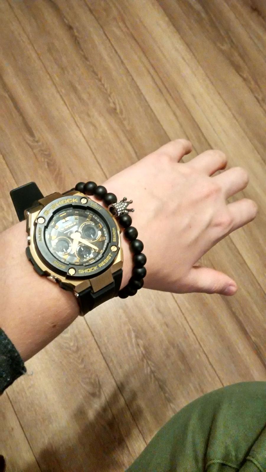 Ahoj všichni, najde se tady nějaký fanoušek hodinek Casio a kolekce G-Shock? Musím se pochlubit výbornou kombinací, která se mi povedla zkloubit. Na fotce: Hodinky G-Shock GSTS300G-1A9 Černý náramek s korunkou Deltimo