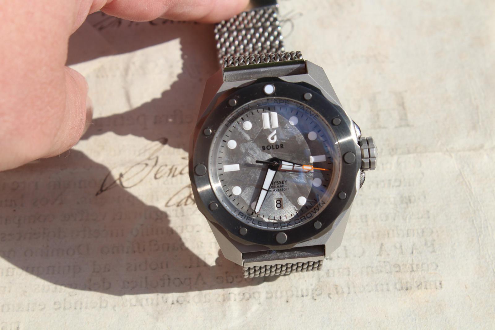 V týdnu mi dorazily (po dvou dnech od objednání , byl kurýr přede dveřmi!!!!!!) Taková zajímavůstka - v Holandsku jsou lacinější než na stránkách výrobce. No, vzal jsem poslední. Je to limitka - mám číslo 40 ze 100 kusů vyrobených Na cifru jsou krásně viditelné Widmanstettenovy obrazce z meteoritu Muonionaluistaa ze Švédska Zkouším spáchat recenzi, asi jich tu mnoho nebude. Zatím tedy pouze vizuální kontakt