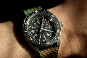Hodinky pro případ zombie apokalypsy. Pořádný švýcarský nůž mám, ještě musím nechat nabrousit mačetu... Ale vážně 43mm lug-to-lug je super a jsem rád, že někdo dělá hardcore vojenské hodinky pro mocnými zápěstími neobdařené jedince. Zakoupeny na eBay, rok a půl staré, gumový řemínek nepříliš opotřebovaný, ale já mám zulu prostě raději. Přemýšlel jsem, jestli nedošetřit na mechanické, ale myslím, že hodinkám tohoto druhu quartz sluší tak nějak víc.