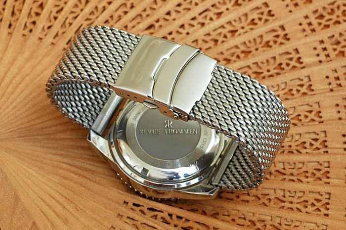 Kdysi dávno jsem se díky dlouhým nohám a malému prostoru v economy class nečekaně ocitl v první třídě boeingu. Tiše jsem si užíval ten komfort, ochutnával atmosféru úspěchu a bohatství a zatímco si spolucestující objednávali vybrané nápoje a pokrmy, já si prohlížel časopisy. Jeden magazín inzerující luxusní zboží včetně hodinek Rolex či Patek Philippe mě obzvlášť zaujal díky skeletonům Revue Thommen. Tehdy jsem o hodinkách nevěděl vůbec nic, skeletony jsem viděl poprvé v životě a pamatuji si, jak jsem si v duchu říkal?Revue, co je to za blbý jméno pro hodinky??? Evokovalo mi to spíš kankán, masky na ledu, Bondyho, Topola či Placáka? Nicméně reklama splnila svůj účel. Značku jsem si v mysli zařadil mezi luxusní hodinky. Letos na jaře jsem na Revue Thommen narazil podruhé. To když jsem po půlroční registraci na Chronomagu začal mít pocit, že nutně potřebuji švýcarské potápky. Budget byl na poměry zdejších pacientů dost legrační, pro mě to ovšem byla za hodinky jen těžko obhajitelná částka, takže jsem jejich výběru věnoval velkou pozornost. Věděl jsem, že chci velikost 42+, WR 300+, černý cifr s bílými indexy, safír s antireflexem, a pokud možno široce rozkročené nožky kvůli chlapáckým řemenům. Rozhodně jsem nechtěl Rolex/Mercedes/ ručky, Sumo efekt (velké pouzdro/úzký tah), dýnko s průhledem, číslice na cifru a kyklopa. Navíc jsem nestál o nějaký profláklý model z Chronoshopu, takže jsem místo vyzkoušených kvalitních značek začal mířit do poněkud méně probádaných vod. Nakonec se ukázalo, že většinu požadavků splňují právě Revue Thommen Diver Professional. Jiskra přeskočila, když jsem na netu objevil dvě fotky ? na jedné byly RT na krásném rejnokovi kdesi u moře na molu http://forums.watchuseek.com/f74/revue-thommen-300m-diver-goes-newport-beach-258848.html a na druhé visely na parádním meshi http://uhrforum.de/attachments/52483d1257102543-seiko-sbdc001-vs-revue-thommen-diver-rtmesh.jpg Bylo rozhodnuto. Kupoval jsem je s tím, že kyklopa odstraním, nakonec jsem si na něj ale stačil zvyknout a už mi nevadí. Šípovitý tvar ruček jsem bral jako bonus - na PO se mi totiž strašně líbí. Další výhodu jsem viděl ve značce ? je méně známá, přitom je švýcarská, s pěknou historií a manufakturními kalibry. Ačkoliv je v ČR prodejce a autorizovaný servis této značky, je tak dobře utajený (v současnosti nemá ani vlastní stránky), že jsem o něm neměl tušení a potápky si koupil v Anglii. Po týdnu velké nervozity a roztoužení konečně dorazily? ? a přišlo první zklamání. Na gumě působily hodně levně. Leštěné pouzdro bez brusu mi přišlo nudné. Luneta nelícovala s indexy na ciferníku. Mezi nožkami na rovné části pouzdra byly ze strany dýnka dokonce jakési drobné ostré nedodělky, které asi někdo zapoměl zbrousit (po páru na každé straně). V první chvíli měly hodinky slušně našlápnuto do prodejní sekce. Pak jsem se rozhodl dát jim ještě šanci, lunetu jsem vyjmul a znovu osadil správně, otřepy jsem zabrousil, aby neškrábaly řemeny, a začal je nosit. Nosím je doteď. Líbí se mi čím dál víc, s každým novým řemenem, natem či meshem a s každou pořízenou fotografií je mám radši. Zatímco to píšu, zrak mi sklouzl z monitoru a už zase se na ně zálibně dívám. Po půl roce si tedy dovoluji seznámit vás se svými pocity a postřehy o těchto hodinkách. Přes svou zamilovanost se budu snažit být objektivní a kritický. Na začátku bych měl asi zmínit značku Revue Thommen obecně. Naštěstí to není nutné, velmi hezký článek o historii firmy i o inhouse kalibrech je na Chronomagu tady: http://www.chronomag.cz/clanek/2009-10-15/revue-thommen-prehlizena-manufaktura.html Takže jen pár doplňujících údajů: když v r. 2001 koupila značku Revue Thommen (resp. divizi na výrobu náramkových hodinek) společnost Grovana, zdálo se, že toto spojení bude pro RT znamenat snížení prestiže (Grovana je sice také malá švýcarská hodinářská firma - podle údajů na internetu tvoří více než polovinu jejích zaměstnanců vyučení hodináři - nemá ovšem tak bohatou a starou historii jako RT). Nakonec se ukázalo, že jsou to plané obavy ? i pod novým vedením se pokračovalo ve vývoji manufakturních kalibrů GT a rozšířila se nabídka modelů v kolekci Sport (zejména řada Airspeed), ve společenské kolekci Lifestyle i v nejvyšší řadě Manufacture. Potápěčské modely nikdy neměly v kolekcích Revue velké zastoupení. Přesto ke značce patří, stačí připomenout vintage modely Revue Cerberus DS Diver nebo řadu Revue Automatic Diver, z období spolupráce s Vulcainem pak RT Cricket Nautical 200m. Z posledního desetiletí se dá zmínit kromě vyobrazeného modelu ještě povedený Revue Thommen Diver Professional Chronograph a předchozí rolexoidní modely Revue Thommen Diver GMT Chronograph, XL Diver Chronograph a XL Diver. Všechny modely spadaly do levnějšího segmentu nabídky manufaktury a byly osazovány strojky ETA, resp. Valjoux. V nové kolekci Revue Thommen potápky již úplně chybí a místo nich Grovana vyrábí či do nedávna vyráběla levnější model pod svým vlastním brandem. Ze všech zmíněných typů se pouze Diver Professional v jednoduché i chrono verzi trochu oprošťují od hloupého kopírování designu Subů a snaží se najít vlastní tvář, i když je jim často vytýkána směs různých ?inspirací?. Je třeba uvést, že model RT Diver Professional nikdy nebyl součástí standardní kolekce Revue Thommen - jednalo se o speciální edici. Tuto skutečnost mi potvrdil H. Schweitzer (Revue Thommen/Grovana CO LTD), když jsem jej kontaktoval v marné naději, že mi zodpoví otázky ohledně tloušťky safírového sklíčka, vnitřního ant