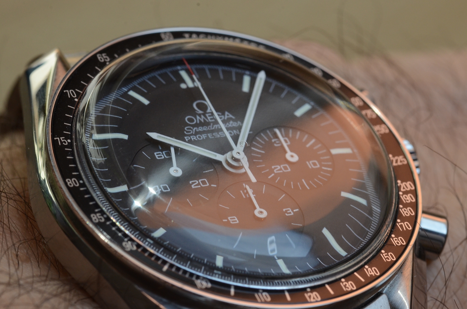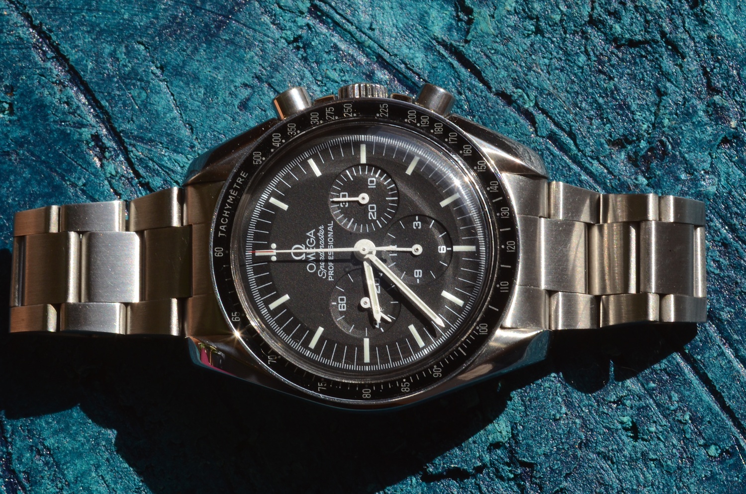 Z důvodu aktuálního pracovního nevytížení nastala vhodná doba představit moje moony. Každý skutečný chronopacient musí za život vyzkoušet (jedny, dvoje, ? atd. ? každý si doplní svůj případ) moony. Alespoň jsem to tak po vstupu na toto fórum chápal . Jsem tu už asi 7 roků, vyzkoušel a protočil mraky vintážek a taky sem tam nějaký nový hodinky, ale moony dosud ne. Vždycky, když jsem si je na srazech prohlížel, tak nemoc propukla naplno, ale pokaždé se ihned nachomýtlo něco jiného, co jsem do své sbírky musel mít. Tak jsem to pokaždé pomaličku nechával usnout. Až jednou jsem někde v obecné sekci narazil na post ohledně myšlenky skládačky vlastních moonů, tuším že to měl v plánu Beeman. A červík zahlodal. Protože jsem díky dané konstelaci usoudil, že Rolex v dnešní době není pro mě, mohl jsem se koncentrovat jedním směrem. Kolem a kolem mě prostě nápad na vlastní skládačku moonů chytil. Důvodu bylo povícero, ale tady jsou ty zásadní: Hodně nových hodinek jsem ponosil, po čase s větší či menší ztrátou prodal, abych po dalším čase, když je zase někde uvidím, po nich zatoužil znova. A opět po kratší době prodal. Navíc se ty intervaly nákupů a opětovných prodejů povážlivě zkracovaly. Nejen že to je dost schizofrenní, ale leze to hóódně do peněz. Když si složím vlastní kousek, tak ho (doufám) neprodám. Ne, že bych to třeba nezkusil, chronobundus je zákeřná nemoc ? už jsem prodal i kousky, co jsem koupil a ani nestačil vybalit, když došly ? ale spoléhám na náročnost zdejšího koupěchtivého publika, že by takovou skládačku nechtělo. Za druhé jsem moony chtěl mít trochu odlišné od ostatních a modifikovat sériový kus mi přišlo jako barbarství. Nakonec je ta modifikace vizuálně velmi nenápadná, přesto jsem spokojen. Za třetí rád sbírám, kompletuju, renovuju (ne já osobně, ale nechávám to dělat místní mistry!) staré vintážní kousky. Jsem zvyklý, že někdy trvá několik měsíců, ba i let, než se dostaví konečný výsledek. Nejprve shánění potřebných dílů, potom přemlouvání hodináře a následně klečení na jeho krku, že už ten rok (dva, tři) je přece jen dost dlouhá doba na dokončení opravy. Prostě jsem byl donucen být trpělivý, a proto mám vždy rozděláno několik různých projektů (momentálně asi 5-8). Nějaké moony navíc budou prostě brnkačka? ? no, nebyly. Dílo se sice nakonec podařilo, ale už byly chvíle, kdy jsem moc nedoufal, nevěřil. Mým záměrem bylo dát dohromady moony opticky ve stavu nových a to do 50 tis. korun. Proto i ten název vlákna "Omega Moonwatch Limited Edition Bastard do 50 tis.Kč" . Z dnešního pohledu a zkušeností to hodnotím jako celkem odvážný cíl. Nejprve uvedu časové souvislosti. Začal jsem shánět jednotlivé díly, a to výhradně přes ebay: říjen 2017 ciferník září 2018 strojek a pak už to šlo přece jen rychleji - září 2018 komplet originální pouzdro říjen 2018 kompletní sada ruček říjen 2018 doplnění chybějících dílů (korunka, natahovací hřídel) + jiná vteřinovka chrona. Tu jsem chtěl cíleně, originální s kapkou na konci se mi nelíbí. duben 2019 ještě nulovací páka chrona a tlačítko nulovací páky. Podotýkám, že jsem chtěl vše mít originální díly, žádný aftermarket. Což v dnešní době, kdy Omega velice omezila dodávku náhradních dílů i na tak provařený model jako jsou moony, není jednoduché. S aftermarket díly by vyšlo výrazně levněji, ale takto jsem to prostě nechtěl. S jedinou výjimkou, kterou byl strojek. Na tom to také celé dlouhou dobu stálo. Věděl jsem, že shánět 1861 nebo dokonce 861 v nějakém slušném stavu je ekonomický nesmysl. Ty strojky se samostatně prodávají strašně draze. Takže jak z toho ven? Je to celkem jednoduché. Strojek 861 je v podstatě licenční původem od Lemanie, konkrétně kalibr 1873. Nevím, zda a jaké úpravy si tam Omega udělala, hlavní viditelnou odlišností je barva strojku. Omega (861) je zlacená, Lemania 1873 od počátku rhodiovaná, čili má stříbrnou barvu. Pokud se nepletu, tak dnes už i Omega 1861 je stříbrná. Takže jsem hledal na ebay, pár strojků mi uteklo - některé byly v žalostném stavu, jiné šly cenově dost vysoko. Jednu dobu jsem zvažoval vybrakovat nějaké funkční chrona, např. Hamilton, Paul Picot či jinou méně známou značku. Ale štěstí se na mě usmálo a podařilo se mi sehnat strojek v perfektním vizuálním stavu, a dokonce i s originálním můstkem od Omegy. Zřejmě jsem nápad na skládačku neměl jenom já . Potom už to šlo rychleji, komplet pouzdro je ještě stále sehnatelné a stejně tak ostatní díly. Paradoxně největší problém byl s drobnostmi jako byla chybějící nulovací páka chrona a tlačítko nulovací páky. Ve strojku Lemania tyto součástky nebyly, Omega je ale prostému lidu neprodává, jsou v režimu ?restricted?. Nějakou dobu opět trvalo, než jsem je na ebay vyhrabal a draze zaplatil . Tah je modifikovaný Omega 1181/215. Ten sice na moony nepatří, je to tah pro řadu Omega Dynamic, ale líbí se mi ?oyster? tah, navíc současný originál 1998 moc nemusím. A hlavně jsem chtěl obyčejnou subtilní sponu. Ref. 1171 byla druhá alternativa, ale nakonec to vyhrál 1181 a to prostě proto, že jsem ho měl doma už delší dobu, původně jsem s ním počítal na Chronostopy, ale na ty neseděl. Koncovky 633 - ty starší s vyraženým číslem - jsem získal od Beemana. A k tomu taky jeho parádní kožený řemen. Vše složil dokupy mistr Valis v polovině loňského roku, pohrál si i s lícováním tahu, byla tam potřeba korekce v řádu desetinek milimetru. V konečném finančním zúčtování jsem zůstal těsně pod stanovenou hranicí 50 tis. Kč a to včetně servisu strojku, tahu i ř