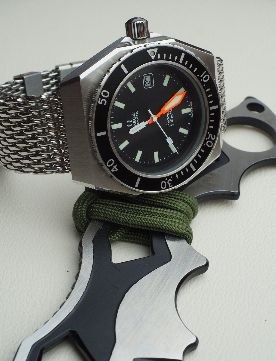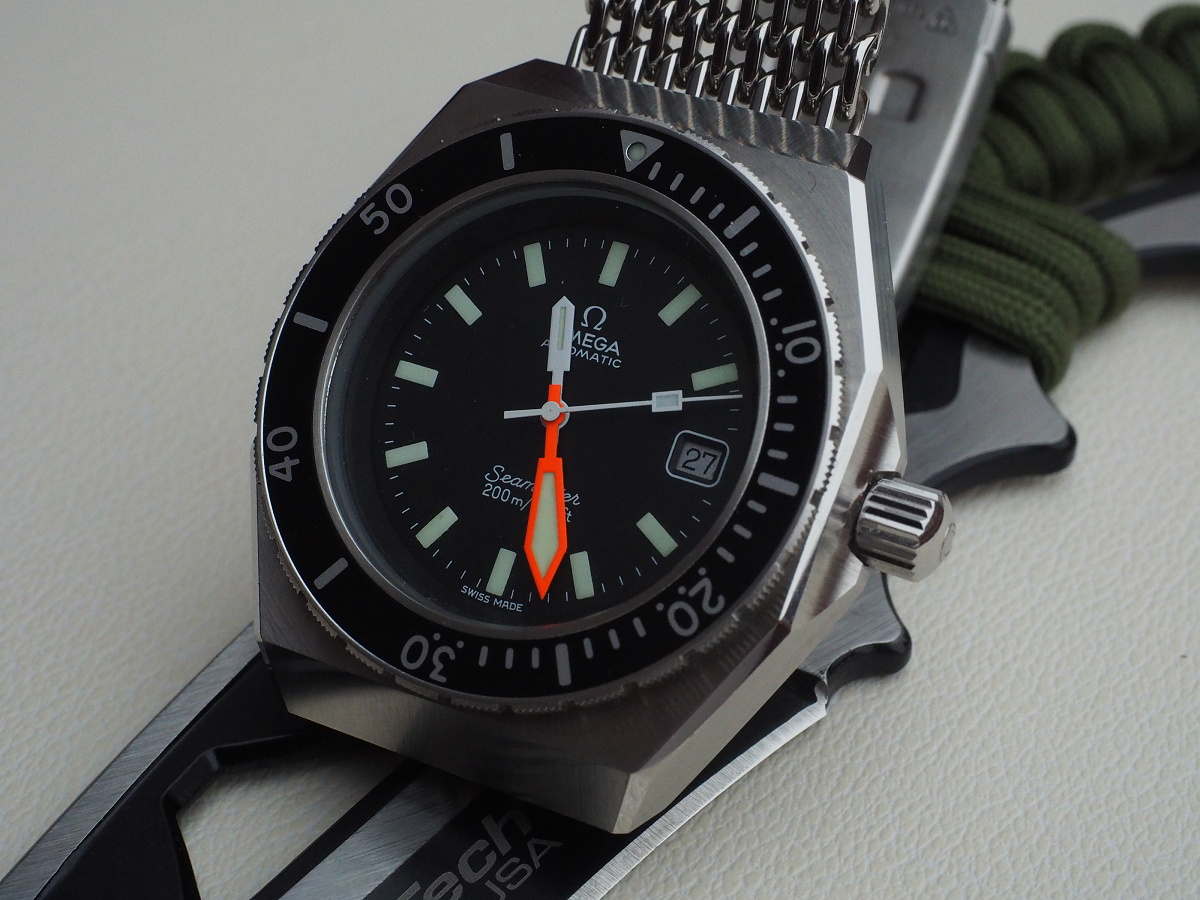 Ahoj, tak jsem se po dvou letech pasivního zkoumání Chronomagu a učení konečně odhodlal :-) Hodně se mi zalíbily vintážní Omega Seamaster Cosmic, tak jsem si jedny nedávno pořídil - netradičně v hranatém pouzdru. Nyní už jsou čerstvě opět u nového majitele. Pustil jsem je z několika důvodů: příliš dlouhý tah (jsem zvyklý nosit hodinky natěsno, více už tah zkrátit nešel), nízká hmotnost hodinek (nezvykl jsem si na to) a také neustálý strach o plastové vypouklé sklíčko. Navíc bych rád zkusil opět něco nového a odolnějšího (mám zálusk na potápky Certina nebo Longines).