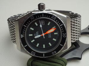 Legenda OMEGA SEAMASTER 166.177 aka ?SHOM? Po roce působení na Chronomagu jsem si řekl, že je třeba se odměnit za přežití chrono horečky a nadělit si k vánocům nějaký vysněný diversky. Vyhrály to nakonec Omegy. Poštěstilo se mi koupit ikonický model Seamasterů ref.166.177 SHOM, které pocházely z kamenného obchodu v Zurichu, ale jejich původ a reinkarnace vznikla v Austrálii ve firmě Watchco. Protože si tento model zaslouží více pozornosti, dovolil jsem si o něm napsat svou první malou recenzi tady na fóru. Omega ref.166.177 byla součástí řady Seamaster 200 s kalibrem 10xx Seamaster, která nahradila předchozí strojky a řadu potápěčských hodinek Seamaster 300. Kolekce obsahovala modely 166.068 aka ?Banana? nebo aka ?Poppy? lišící se barvou ciferníku, dále pak model 166.091 s ?Pilot line? pouzdrem. Model SHOM ref.166.0177 byl poprvé představen na veletrhu Baselworld v roce 1973, ale teprve o 6 let později vstoupil do života model SHOM díky francouzskému námořnictvu. Omega Seamaster 200m ref. 166.177 získaly přezdívku ?SHOM? díky tomu, že Omega tento model vyvinula a vyrobila jako svůj 4.model řady Seamaster 200 na zakázku pro francouzský státní hydrografický a oceánografický institut zvaný SHOM (Service Hydrographique et Océanographique de la Marine). Tento institut dokumentoval a studoval oceány a vydával námořní publikace, mapy, mořské průvodce a navigační schémata pro námořnictvo. Když francouzské válečné námořnictvo otevřelo soutěž na ?oficiální? potápěčské hodinky pro své ?žabí muže?, OMEGA pohotově v tendru nabídla Seamaster 200 ve verzi SHOM. Zakázku Omega vyhrála a v roce 1979 začala dodávat model 166.177 francouzskému námořnictvu (France´s Marine Nationale). Normálně bylo dýnko modelu 166.177 označeno ?Tested to 200m?, přesto některé kusy nesly označení ?MN79? zmiňující rok začlenění hodinek do French NAVY. Čím je model SHOM tak originální a ikonický je jeho oktogonální masivní pouzdro s kombinací leštěných a broušených ploch vytvářejících ostře řezané hrany. Pouzdro o rozměrech šířka 43mm bez korunky (48mm včetně korunky), délka 50mm, 15mm vysoké, lug 22mm je na dobu 70. let hodně masivní. Luneta mírně přesahuje pouzdro na stranách pouzdra. Ciferník s nápisy Omega Automatic, Seamaster, WR 200m/660ft pochází z řady ?Pilot?. Model SHOM lze sehnat ve dvou verzích ručiček ? plongeur bílo-černé originální verzi ruček nebo s oranžovým setem ruček z verze Seamaster 120 ?baby ploprof? (dodávané jen v modelech Watchco). Datum na pozici ?3?. Nízká, vroubkovaná, oboustranně otočná luneta s lumi bodem na ?12? běhá přesně. Šroubovací signovaná korunka, signované dýnko s mořským koníkem. SHOM se dodávaly na originálním tahu 1162/172 nebo na praktickém Omega meshi 1247/237 dodávaným s potápěčskou extenzí na neopren. Srdcem hodinek je Omega strojek 1012, 23 kamenů, s datovým kolem, rychlé nastavením data , funkce hackingu. Kalibr v mých hodinkách je z roku 1974. Model Omega Seamaster SHOM ref.169.177 se stal jedním z oblíbených modelů omega servisní australské firmy Watchco, která tomuto modelu ?vdechla? život v nové reedici. Hodinky se liší velice dobře laserem opracovanými pouzdry, brusy, perfektní lumi na cifru a hliníkovou vložkou lunety. Hodinky jsou ale skládané z originálních Omega dílů a i tyto kusy, kterých je na trhu nejvíce, se prodávají v rozmezí 3.500 ? 4.500 USD.