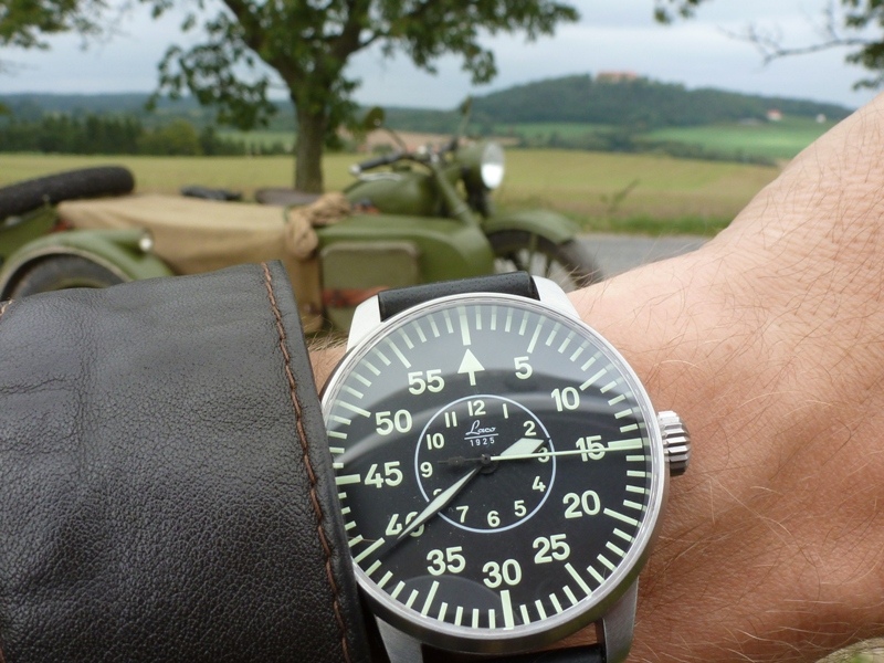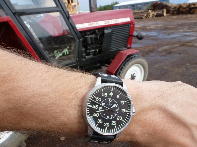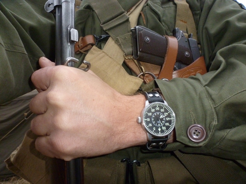 Tak jsem se tak poohlédl po starších fotografiích svých hodinek a rozhodl jsem se, že po dlouhé době napíši zase jednu recenzi. Myslím si, že mám opravdu co psát, protože to nebude text psaný po rozbalení obdržené krabice, ale po sedmi letech nošení. Někdy opravdu drsného nošení. Spouštěcím impulsem byl možná nákup nového řemenu, který jsem jim dopřál a který si zasloužily, protože celou tu dobu byly na původním. Tím u mě prodělaly jakousi renesanci. Jedná se o německé letecké hodinky Laco (dodneška vlastně nevím, jak se to správně čte), které vycházejí z druhoválečných hodinek pro navigátory. Ty válečné jsou samozřejmě větší, jsou dnes velká rarita, tyhle mají 42 mm a jsou docela vysoké. Šíře řemenu je 20 mm, mají safírové sklo, ocelové pouzdro a měly by zvládnout vodní sloupec 50 m. Uvedené hodinky se vyrábějí s několika různými kalibry a liší se samozřejmě cenou. V těchto mých hodinkách tepe japonský strojek Miyota 821A a mají automatický nátah. Já vím, není to echt německá či švýcarská hodinařina, někomu by se to zdálo nepůvodní, ale já jsem rád, že z válečného nacistického propojení osy Berlín-Řím-Tokio tam není aspoň nic italského. Jak ukáže další, tenhle strojek se nemá za co stydět a nakonec jsem rád, že tam je tenhle, tj. nejlacinější verze. K historii této německé firmy nemusím nic moc psát, hodně se toho dá najít na netu, jedná se o jednoho z původních výrobců hodinek dodávaných pro Luftwaffe. Firma funguje od roku 1920 dodnes. Uvedené hodinky se vyráběly s dvěma typy ciferníků typ A s hodinovým čistým ciferníkem pro piloty a typ B s minutovým pro navigátory, který mám já. Ten druhý typ se mi ze začátku vůbec nelíbil, a když jsem uvažoval o koupi těchto hodinek, tak jedině s typem A. Po těch letech, strávených s těmito hodinkami na ruce, můžu napsat, jedině B-muster! Proč jsem si je tenkrát koupil a proč zrovna tyhle? Potřeboval jsem odolné druhoválečné hodinky. Zabývám se vojenskou historií a chtělo to hodinky. Není nic blbějšího, než když na dobové fotografii vykoukne PET lahev, moderní SPZ nebo nedobové hodinky. Vím, že výstroj dostane na akcích často hodně zabrat, takže nějaké vintážky by sice byly stylové, ale časem bych je zničil. Vlhkost, prach, otřesy. Tohle byly naprosto perfektní „kořistní“ hodinky, které se hodily do kterékoli válečné uniformy a operace. Potřeboval jsem něco s výbornou luminiscencí, aby se to dalo používat při nočních akcích. Dál jsem chtěl automaty na ježdění na motocyklech, protože moje jediné quartz přestaly fungovat přesně v ten nejblbější čas, když jim došla baterka. Chtěl jsem něco odolného na ven na lítačku, na kolo, chtěl jsem pilotky. No a najednou byly v inzerci (tímto zdravím Matinielu ), měly sice ten hnusný cifr a tak jsem je vzal na zkoušku. Dneska bych jiný ciferník nechtěl a zkouška bude doufám trvat ještě dlouho. Užitné vlastnosti jsou zde z mého pohledu na maximu. Začnu přehledností ciferníku, který i přes složitější vzhled je výborně přehledný. Myslím, že i zaujme neznalého, na pěkné „kořistní“ hodinky jsem byl i upozorněn, zřejmě obdobně postiženým fanouškem na jedné hlídce na akci v Plzni. Hodinky jsem často používal i v noci a mají perfektní luminiscenci, která vydrží dlouhé hodiny. Viz fotografie s Precista, Wenger a Steinhart. Zjistil jsem, že důležitý je pro mě i ten trojúhelník značící dvanáctku, protože už se mi stalo, že se lze v noci přehlédnout o hodinu. Měli to chlapci promakané už za války. Naprosto skvělá odolnost, safírové sklo je obrovská deviza, pouzdro i po tom, čím prošly včetně vlhkosti, vypadá skvěle a strojek šlape perfektně. Přesnost je do cca 1,5 minuty za týden při nonstop nošení, kdy je nesundávám z ruky. Když delší dobu leží, stačí seřídit čas, párkrát natáhnout korunkou a dál se o ně nestarat. Přemýšlel jsem o mínusech a jeden by se našel. Hodinky jsou docela vysoké a žádné oblekovky to nejsou. Ale pod rukáv vycházkové uniformy se vejdou, takže není co řešit. Je pro mě docela úsměvné číst nesmělé obavy některých, jestli lze s hodinkami s automatickým nátahem hrát tenis nebo jezdit na kole. Mohu odpovědět, ano lze. Stejně jako s nimi lze střílet z BAR, Mosinky či Garanda v ráži 30-06, vozit se na T-34 či Shermanu, ve věži M8, jezdit na kole či vojenském motocyklu v terénu, řídit na normandském pobřeží Dodge, traktor nebo pancéřovaný Halftrack. A to jak v parném létě, třeskutých mrazech, v dešti, blátě, ve sněhu. Ano, tím vším se mnou uvedené hodinky prošly a při všech těchto akcích jsem je měl na zápěstí. Dá se říct, že prodělaly několik spojeneckých ofenzív, byly se mnou na vylodění v Normandii, na Ostravské či Brněnské operaci, měl jsem je na ruce v zákopu, kdy se na nás valil rachotící Panther s německou pěchotou, měl jsem je na ruce na leteckých dnech, kdy se nám nad hlavami proháněly Spitfiry či Mustangy, při vrtání se ve starém motocyklu u silnice, při pozorování hvězd, při pouštění draka s dětmi, ale i při koupání miminka. To, že jsou toho lacinějšího provedení, mi nebránilo dát jim zabrat, nešetřit je a brát si je na ty nejnáročnější akce. Nestály zas tolik, tak by mě zas tolik nemrzelo, kdyby mi spadly ze skály na Point du Hoc nebo je přejel tank. Vlastně mrzelo, asi hodně. Když se ohlédnu za těmi společnými tisícovkami najetých kilometrů, stovkami nastřílených nábojů a spoustou volného času, kdy jsem je měl na ruce, tak je mám hodně rád. Pořád fungují perfektně. Důkazem je následující soubor fotografií, které jsou opravdu průřezem mnoha let. Myslím, že v