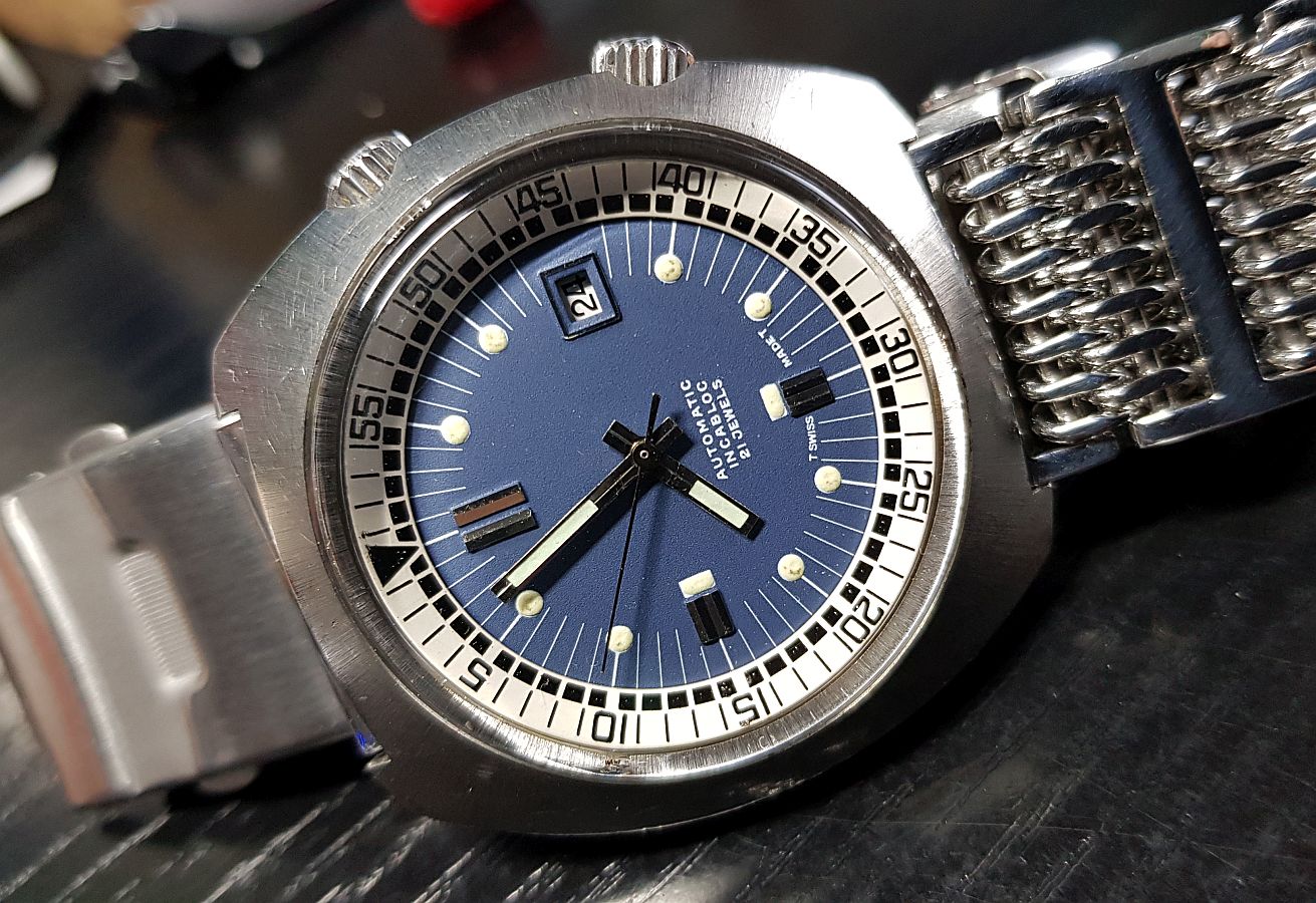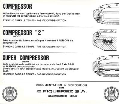 Mám rád staré potápěčské hodinky a zejména ty s pouzdry compressor a supercompressor z dílny Ervin Piquerez S.A. (EPSA). Tato společnost v roce 1955 podala patent na dvě revoluční konstrukce pouzder Monobloc a Compressor. Oba návrhy se setkaly s úspěchem a Compressor, který používal vnější tlak ke zvýšení vodotěsnosti, kterou poskytují těsnění umístěná mezi korunkou, zadní částí a pouzdrem, byl hojně využíván spoustou firem, např. Benrus, Enicar, Hamilton, Jaeger leCoultre, Longines, Milus, Olma, Technos, Girard-Perregaux, Tissot,Universal Geneve,Lip, IWC, Droz, Blancpain, Vetta a mnohé další. zde příklad víčka se značením EPSA vč. patentů. Sběratelská oblíbenost pravých Compressor hodinek je veliká, proč pravých? Protože ne všechno, co má dvě korunky má i compressor pouzdro. Drobným poznávacím znamením /nedá se na něj 100% spolehnout/ jsou šrafované korunky. Na tento zájem reaguje i současná hodinářská produkce, která jede na retrovlně a ke dvoum korunkám se vrátila, ale to je jiný příběh, s kterým už f. Piquerez nesouvisí. Jak jsem psal na začátku, miluji tento typ hodinek a jediné, co mi neumožnilo nosit tyto staré hodinky je to, že jsou na mou medvědí tlapu malé, tak jsem byl nucen nosit novodobé remake od f.Longines a Alpina. To se změnilo tento týden, protože se mi povedlo na Aukru vydražit neobrandované Supercompressor hodinky o velikosti 43mm. Těch velkých je obecně málo a chodí kolikrát za nesmysly, takže jsem rád, že jsem jedny dobové, navíc ve velmi slušném stavu sehnal. Indigo ciferník je bez chyby, stejně tak i lumi. Uvnitř zřejmě tepe ETA 2481, ale to zjistím, až je hodináž otevře, protože mají na dýnku 12ti hran a nechci je zbytečně poškodit Stejné hodinky, ale už pod svým logem prodávalo v té době několik firem i firma Lanco, ale s jiným strojkem Zajímavé je, že většina, které jsem dopátral jsou vyrobeny v březnu 1972, podle značení na dýnku, jsem zvědavý, jestli to mám také tak. Na fóru je dost nádherných starých Compressorů, tak budu rád, když tohle téma bude žít a uvítám jakékoli doplňující informace, myslím, že si to tyto zajímavá pouzdra zaslouží. Zde stránky, které se těmito pouzdry zabývají, krásně to shrnují a ze kterých /krom mnoha dalších/ jsem sbíral informace https://wornandwound.com/guide-super-compressors/ a http://scubawatch.org/EPSA_SC_FAQ.html
