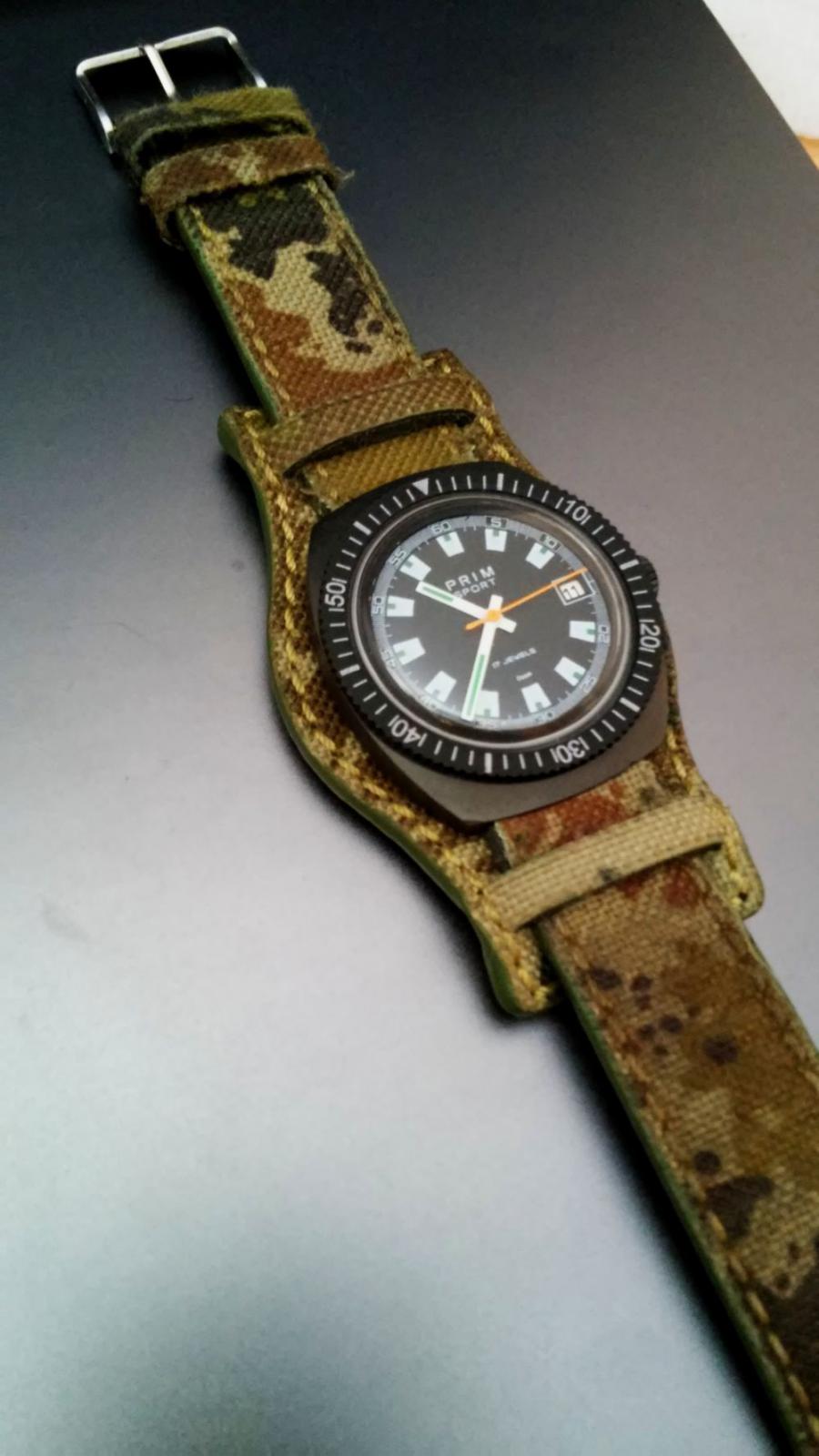 p3k Odesláno 15. ledna 2017 Nahlásit Odesláno 15. ledna 2017 PRIM SPORT 2 PVD Čau mágové! PVD na ?sportech? , to byl tady na fóru dlouho nejen můj sen. Protože se naskytla příležitost, rád jsem ji využil k tomuto pokusu. O výsledku bych se tady s Vámi rád podělil. V podstatě s tím nebylo moc práce . Stačilo hodinky rozebrat, poslat na procedůru a pak zase skložit. :-) Samotná úprava proběhla tak, že se jemně opískovalo pouzdro a následně nanesla vrstva PVD. Chrom ale nebyl úplně odstraněn, aby byly zachovány hrany pouzdra. To by pravděpodobně při odstranění celé vrstvy chromu při měkkosti mosazi mohlo dopadnout špatně. Tímto děkuji členu vojtamalenak za jeho bezjištnou vstřícnost a ochotu . Na pouzdru jsou vidět i malé nedostatky, se kterými jsem ho už tak poslal. Na pravé straně pod korunkou je drobný ťukanec, který už byl na chromu a vrstva PVD jej zkopírovala. Do pouzdra jsem vložil cifr z ?humbert?. Dýnko pěkně zapadlo, závit sedí, nebyl problém ho utáhnout. WR je momentálně nula, ale možná se nad tím zamyslím a něco s tím udělám Souhrou okolností tady ve stejnou dobu prodával místní vážený člen řemínek s vojenským motivem, který se k hodinkám hodil, což se potvrdilo po jeho nasazení, ale to posuďte sami Přikládám tedy pár fotek jak to vypadá: