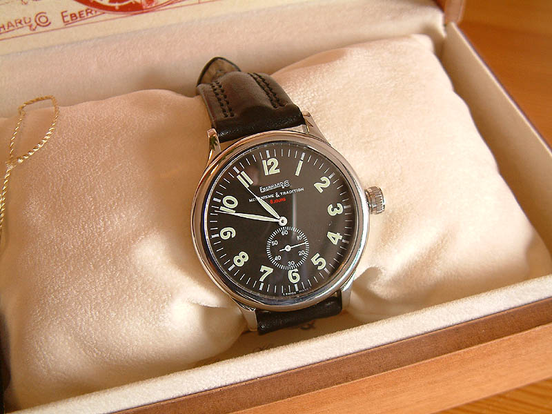 Traveller Odesláno 7. března 2009 Nahlásit Odesláno 7. března 2009 Eberhard Traversetolo 8 days Nejdříve něco o tom, proč jsem se rozhodl pro tyto hodinky. Svůj nedávný hlad po automatech jsem uspokojil hodinkami s kalibrem 7750 a začal se poohlížet po něčem zajímavějším. Stanovil jsem si následující podmínky: mechanický nátah, jednoduchý přehledný ciferník, bez datumovky, s centrální vteřinovkou, průměr maximálně 44 mm (ideálně něco kolem 42mm). Aspoň trošku vlhkuvzdorné, safír, ideálně průhled na strojek. Tyto podmínky splňovalo pár dost těžko dostupných pilotek a tak jsem musel trochu slevit ? třeba u té vteřinovky. Taky průhled na strojek mi nepřišel jako podstatná záležitost. Po nějaké době a hledání na internetu jsem narazil právě na tyto hodinky a zamiloval se na první pohled. Upoutal mě tmavý přehledný ciferník (jeho bílá varianta mě moc nenadchla), akurátní velikost hodinek a hlavně ta 8 denní rezerva, která podle mě více než zdatně vyvážila chybějící centrální vteřinovku. To bude něco pro mě sklerotika . Na hodnocení hodinek je ještě brzy, ale zatím na nich vidím jen samá pozitiva ? tedy kromě spony, kterou musela vymyslet chobotnice s několika páry rukou navíc, neb se mi zatím nepodařilo uspokojivě a rychle tyto hodinky nasadit za použití pouze jedné ruky. Asi si budu muset pořídit normální přezku. Přikládám pár narychlo blýsknutých fotek. Jakmile se trošku vyčasí, pokusím se o lepší.