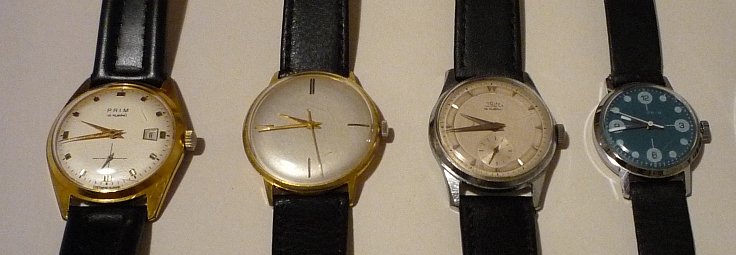 JHonza Odesláno 17. srpna 2009 Nahlásit Odesláno 17. srpna 2009 Tak jsem svoje staré Primky podrobil testu rezervy chodu a získal jsem docela zajímavé hodnoty. Zleva: kal. 52, koupené 1973 jako "renovované": 43,5 hod (vítěz testu) kal. 66, ELEGANT s "umytým" číselníkem, pocházejí patrně z konce 60. let: 42,5 hod kal. 50, "malotraktor", kolem r. 60: skoro 43 hod kal. 66, "školní", asi 1977: nejslabší, jen 38,5 hod. Pokud se týká přesnosti chodu, všechny se vejdou do cca +20 s/den. Myslím, že na tak staré kousky to není tak špatné.