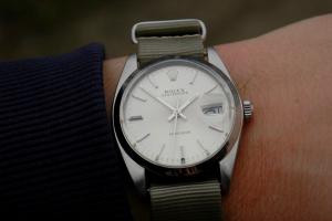 skalis Odesláno 23. prosince 2013 Autor Nahlásit Odesláno 23. prosince 2013 Jo, jenze konskej nato strap je tak 100 ojro, coz je ctvrtina ceny Oyster naramku, takze rozmyslim, jestli to neni plytvani strelivem... Navic porad dumam nad spravnou barvou (viz dalsi komentar).Honzo s kozenym nato strapem to bude perfektni. Konsky zadek je vyborna volba. Tesim se na foto. Je to hadra od Riosu, ani nevadi, ze je siroky 18 mm do 19 mm roztece. Barva by mela byt seda, ale v realu ma lehky nadech do zelena a vypada to opravdu dobre. Problem s barvou je, ze hodinky maji ciselnik kovove barvy navic bez vyraznych kontrastu. Kdyby byla bila nebo byly zlaty indexy, tak k nim krasne pujde konakova barva (libil by se mi kun i treba aligator). Kvuli absenci kontrastu se k nim ani cerna (nebo jina syta vyrazna barva) moc nehodi a naopak seda je pekna. Mozna tmave hnedy kun, ale idealni bude opravdu ta ocel. Takze o tom jeste popremyslim, ale priorita (vcetne budgetu) bude Oyster.Alda má pravdu, ale už i tento zelený hadrák jim neuvěřitelně sedne! Krásná kombinace