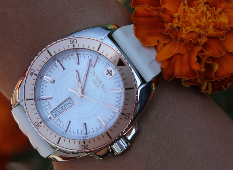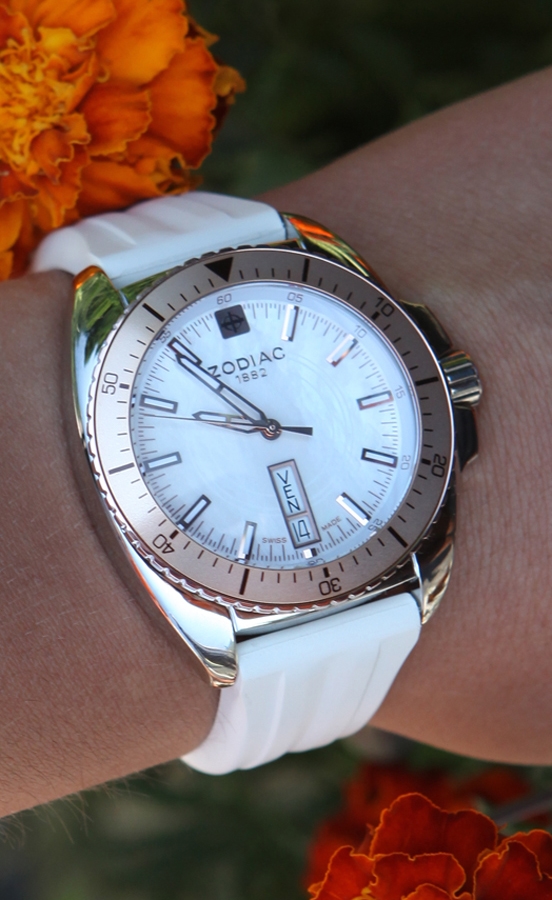verta Odesláno 14. července 2010 Nahlásit Odesláno 14. července 2010 Jelikož si tady většina na léto pořizuje něco s gumou, tak abych nebyla pozadu, chlubím se svými novými Zodiac ZO5525. Já samozřejmě na bílé gumě Budou pro mne jen krátkodobým letním potěšením, no vlastně podle předpovědi trochu delším, jelikož to vypadá, že letošní léto vychází nejen na čtvrtek, ale i na pátek, překvapivě i na víkend Takže pár obrázků prosím všímavější, aby nekomentovali den v týdnu na hodinkách..již je správně přeřízeno, ale přefocovat se mi to nechce