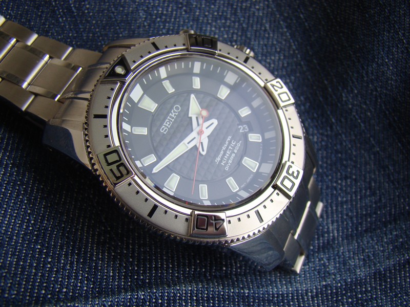 sect Odesláno 23. dubna 2012 Nahlásit Odesláno 23. dubna 2012 Pár fotek mých nových "akčních" hodinek. Lesknou se jak hrom, takže se fotí hrozně blbě ..... Velikost bez korunky: 44mm, ale pocitově větší Výška:13mm Pouzdro: ocelTah: ocel - stejný jako na Seiko MM, s mikroregulacíSklo: safírVodotěsnost: 200 metrůStrojek: Quartz kinetic - a vteřinovka skáče pěkně na indexy Více třeba řeknou fotky: