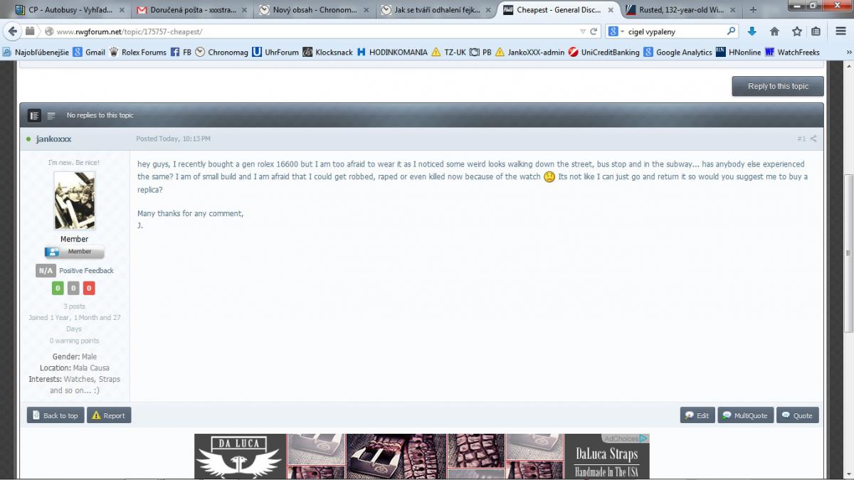 jankoxxx Odesláno 16. ledna 2015 Nahlásit Odesláno 16. ledna 2015 kdo se bojí, nesmí na fakeforum Třeba ti po pravdě napíšou, že po kebuli dostaneš i tak,protože maj takový fejky, že to gangsta nepozná Nebo doporučí něco třídy DD odmocnina?no pockaj, ja som sa len snazil prisposobit americkemu IQ