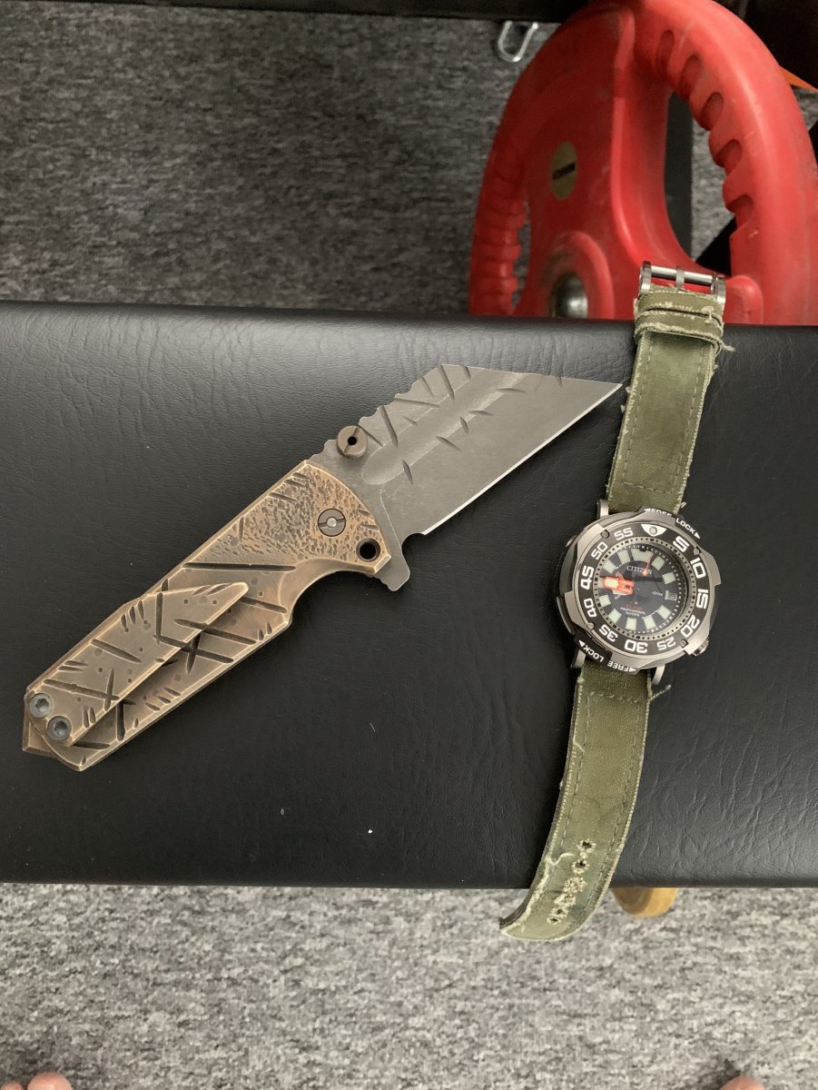 Juraj11 Odesláno 9. května 2020 Nahlásit Odesláno 9. května 2020 Přátelé zdravím vespolek tak dneska ráno mi přijel nůž mých zvrácenych představ o jediném EDC.Takze ještě jednou Artisan Proponent bronze,D2,ložiska,špičkový chod a super pevný a masivní linerlock.Vyhoda noze je,ze jakýkoliv díl je menitelny.Napr.kdyby prasknul liner,stačí jej proste rozebrat a nahradit jiným ale to je i u jiných značek.Takze zase nic zásadního.Ale potěší to v celku.Nicméně vše je tak predimenzovane ze si to ani neumím představit.D2 je brutálně ostrá,mám už ji na snad 5 noži někdo ji rad někdo ne ale je to výborný materiál.Obzvlaste na takové hovado...Prosím omluvte chyby píšu v radostnem zápalu!Tady se Dony vyřádil Sent from my iPhone using Tapatalk
