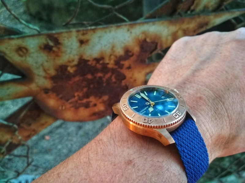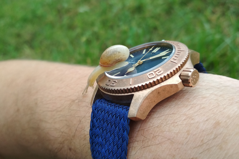 5etter Odesláno 13. srpna 2019 Autor Nahlásit Odesláno 13. srpna 2019 Včera to byly tři týdny, co mám tridenty bez přestávky na ruce. Pouzdro začíná pěkně flekatět. Rezignoval jsem a beru je do vody na kůží podšitém canvasu, který tudíž začíná být vyšisovaný jako moderní rifle. Po každé koupeli se na plochách pouzdra objeví jiná struktura. Sellita šlape výborně. Za ty tři týdny se hodinky předběhly o minutu a půl, ale nebyly to žádné eskapády tam a zpátky, jak jsem zvyklý u Rusů nebo Japonců. Švýcar jede pěkně rovnoměrně, drží stabilní tempo a bez ohledu na denní činnost nebo noční odkládání si udělá svoje +4,2s denně. Kdyby si dal Angličan trochu víc práce s vyladěním strojku, šly by hodinky úplně přesně. Když už jsme u toho strojku... Tiká docela potichu a docela rychle. Moje ucho je zvyklé na pomaloběžné strojky a tak mi 28800bph připadá jako strašný fofr. Když člověk v tiché místnosti manipuluje s hodinkama u ucha, je slyšet otáčení rotoru. To mi připomíná Citizen. Světla svítí. Není to zdaleka taková záře jako u Seika, ale úplně to stačí. Aspoň není tolik vidět slábnutí v čase. Připadá mi, že to svítí celou noc pořád stejně slabě. Datum se překlápí pár minut před půlnocí a je to mžik. Cvak a je to, jako u amfibií. Žádný proces na celou noc, jak to mají Japonci. Ze všech řemínků jsem si nejvíc oblíbil tenhle canvas s cheapestnatostraps. Ostatní byly šlápnutím vedle a pudou. Ve stejný den jako hodinky jsem si objednal modrou gumu, která se ale cestou někde zasekla a furt ji nemám. Tudíž musí hadr do vody. Vodotěsnost 600m/2000ft. Já jsem ověřil tři metry na dno rybníka. A 819 m.n.m. na vrchol skály. Nicméně nejvíc to těmhle hodinkám sluší při machrování u piva.